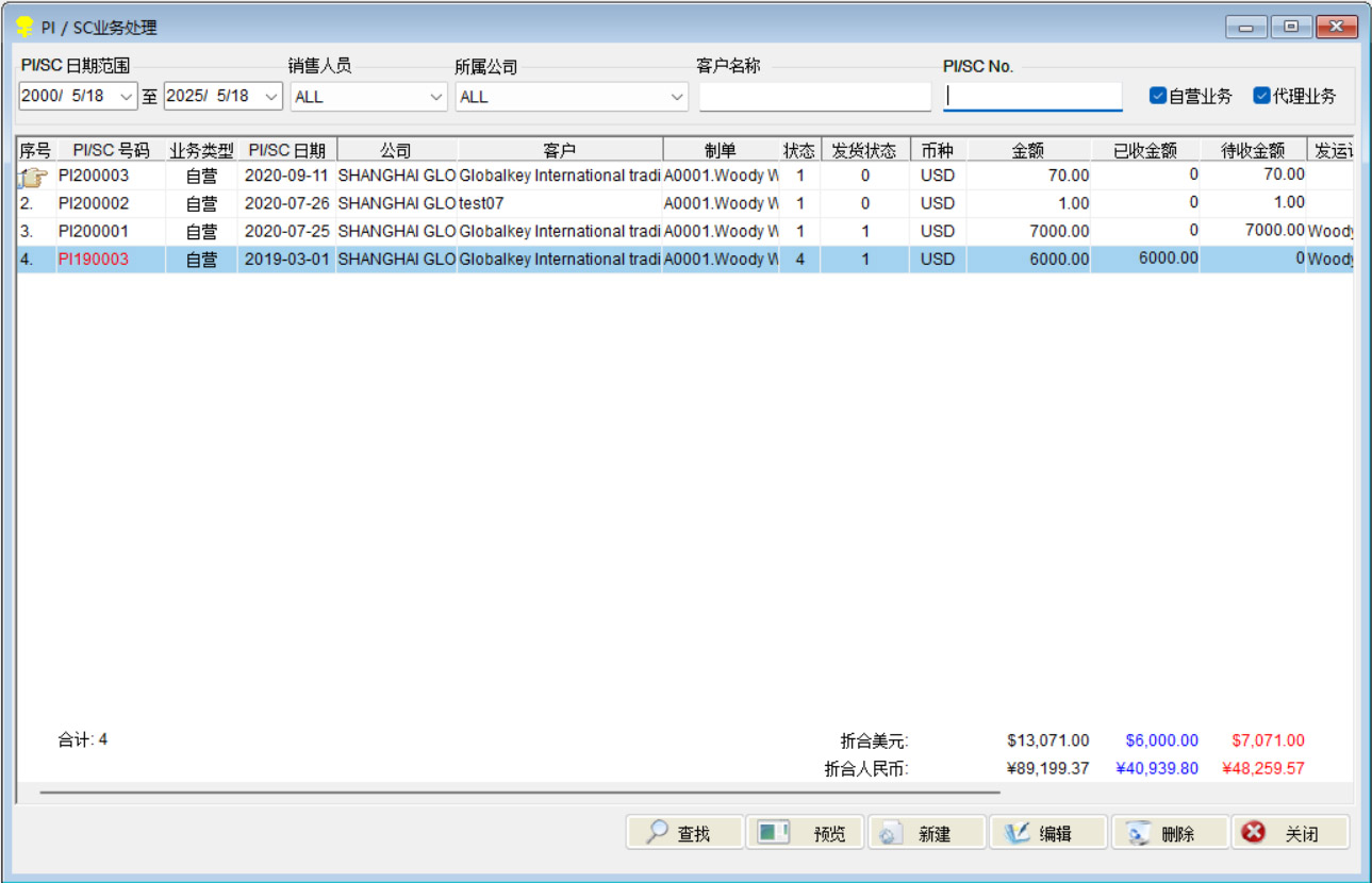 - 客戶管理 詢價列表 銷售業(yè)績 形式發(fā)票